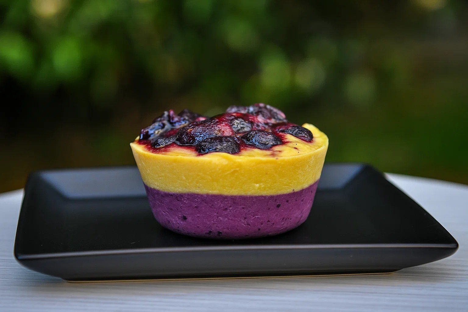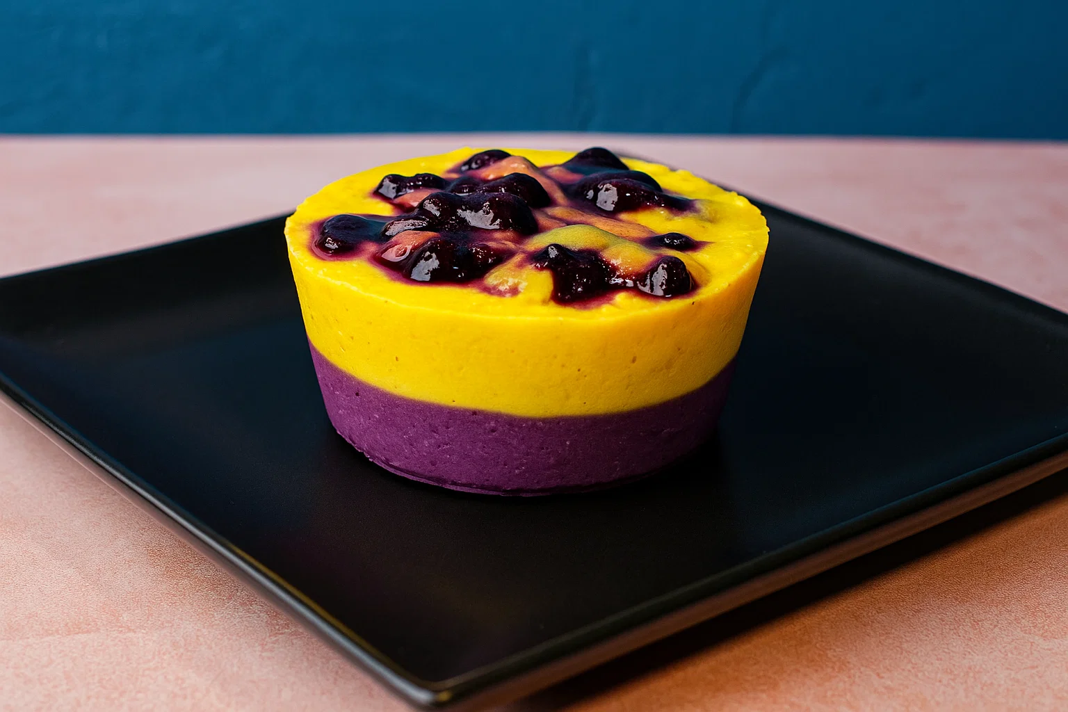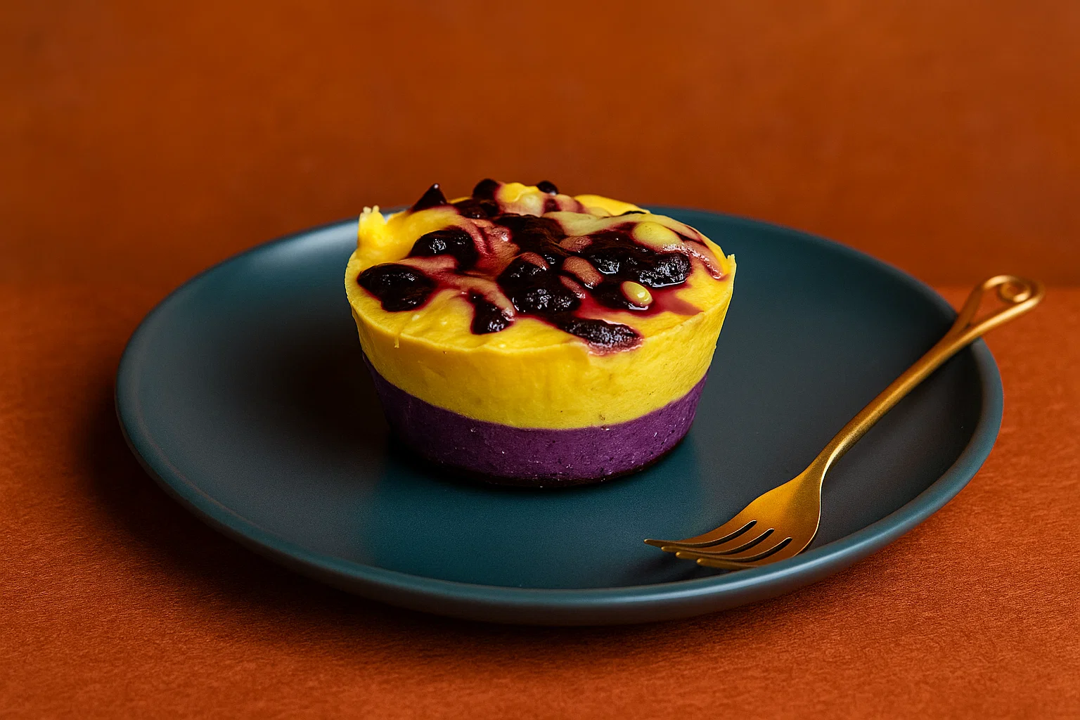 Mini Prăjitura Raw Vegană Mango & Afine „Soleil Passion” (~60g) este un desert artizanal 100% natural, fără zahăr, fără lactoză și fără ouă. Este ideală pentru perioadele de post, dar și pentru orice moment în care vrei un gust exotic și sănătos.